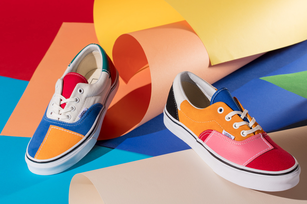 The Vans Era boasts multi-panel construction with a range of material combinations for added depth, including leather patch appliques positioned atop the canvas and suede uppers. The left and right shoe are different too, each with unique color combinations. This retro inspiration continues to the Vans Sk8-Hi, with contrasting suede and canvas construction with patches across the medial and lateral sides of each shoe. Rounding out the three-piece assortment is the Classic Slip-On which showcases vibrant patches across each vamp and heel counter.
